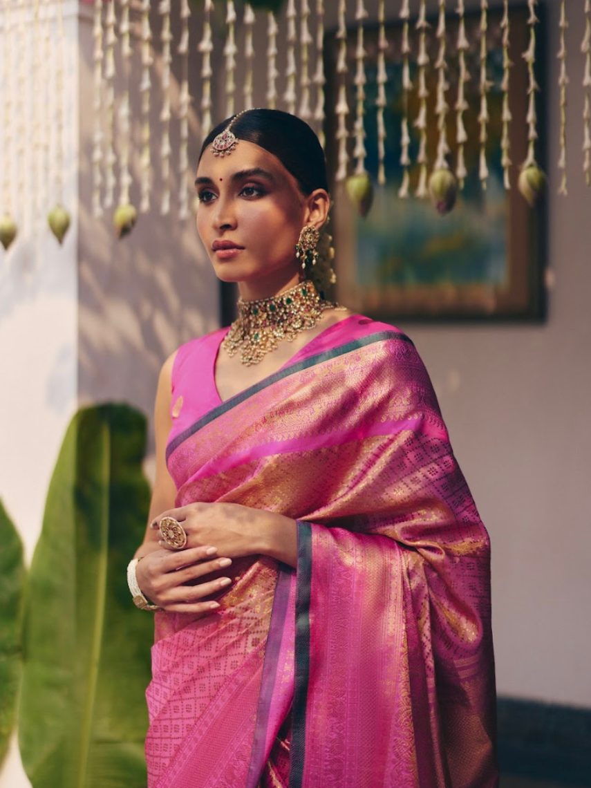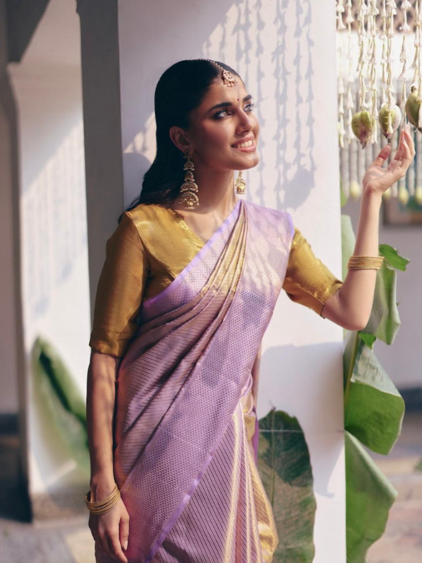 Preservation: Always keep away from harsh chemicals or fragrances to protect the fabric and zari.