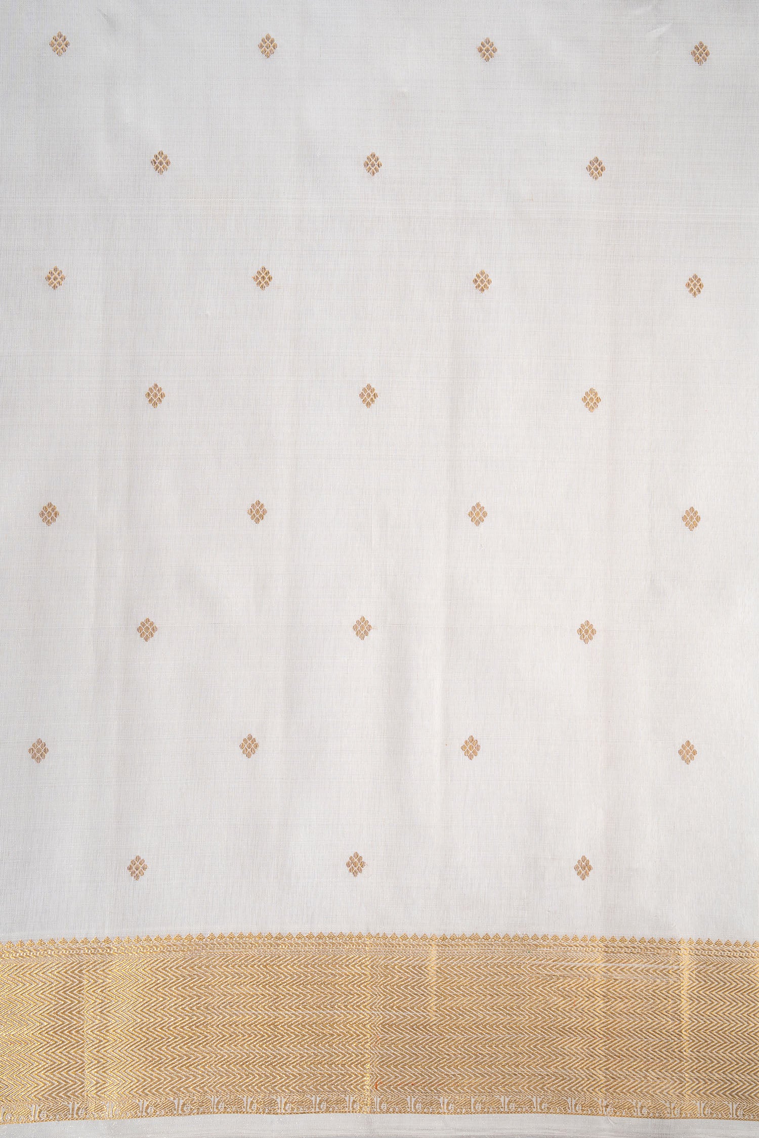 With a weight of 900 gm and 400 gm of Gold zari, it offers just the right balance between lightness and structure. The plain butta design, paired with its rich pallu, ensures that every drape feels as elegant as it looks.