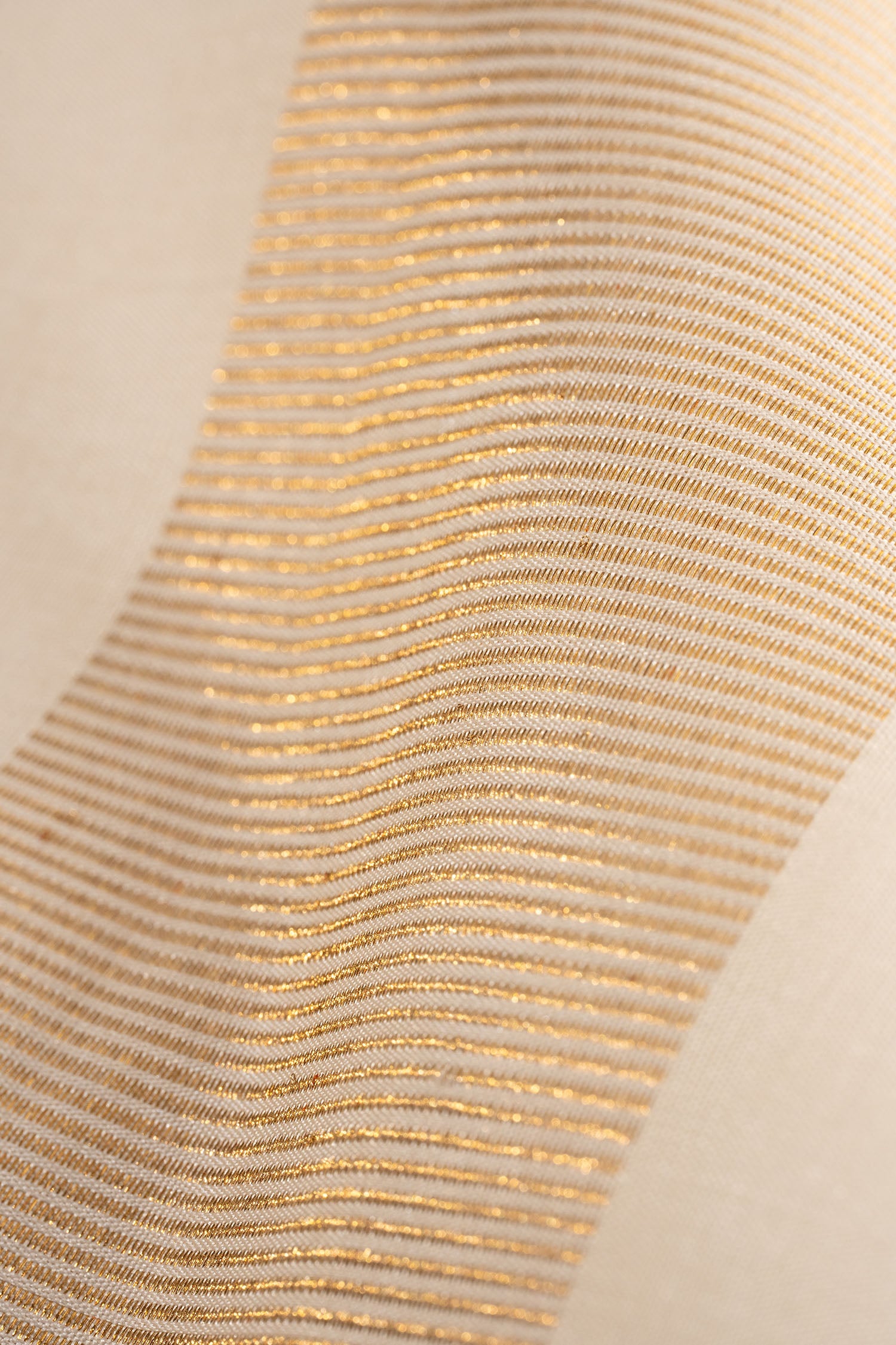 Weighing 650 gm, with 170 gm of Gold zari, it's structured yet graceful flow makes it perfect for special occasions. A saree designed to be cherished, woven to be remembered.
