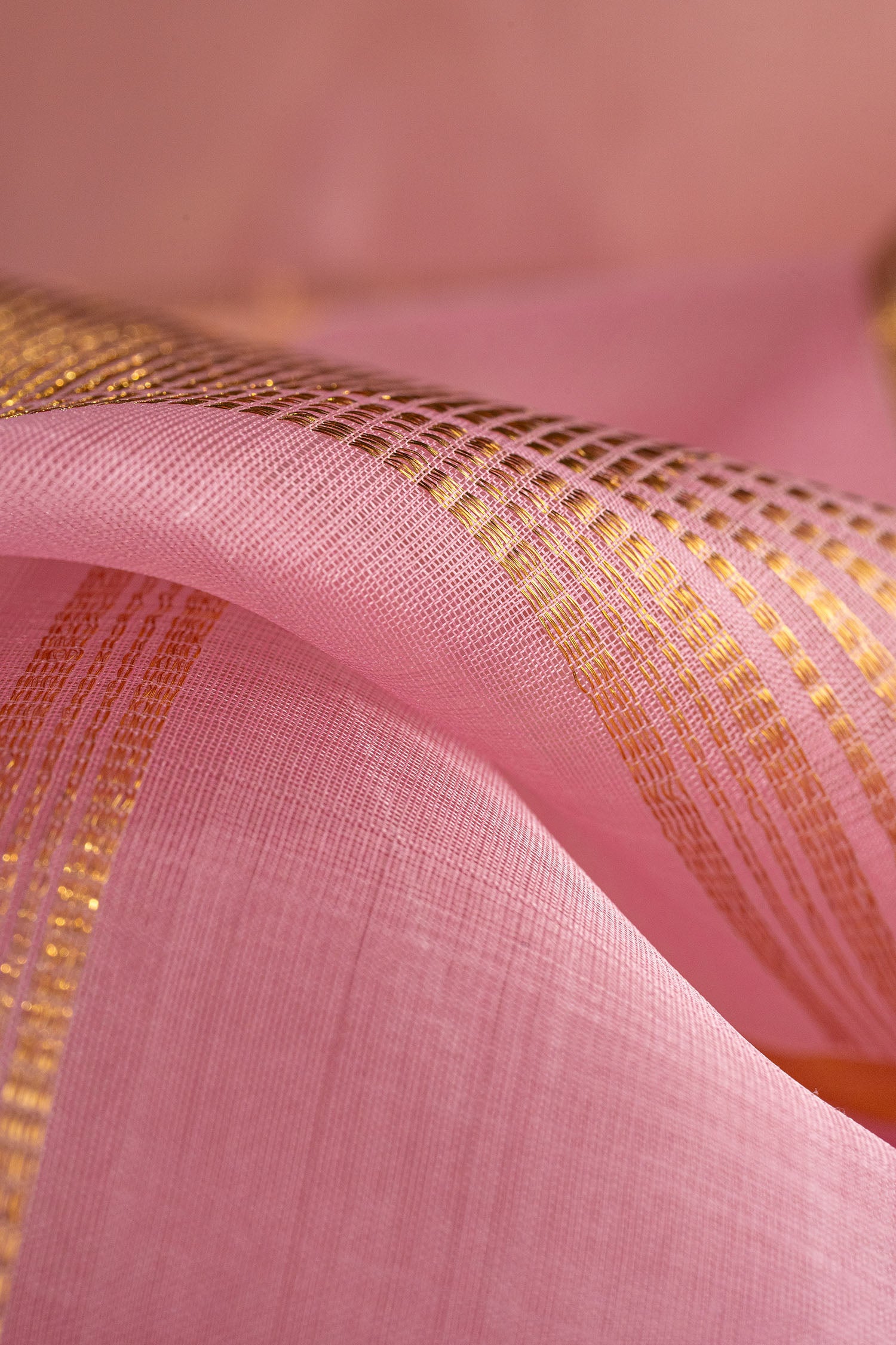 More than just a saree, this piece holds the promise of beautiful moments. The gentle peach and pink tones mirror the warmth of new beginnings, and its soft touch feels like the embrace of a loved one.