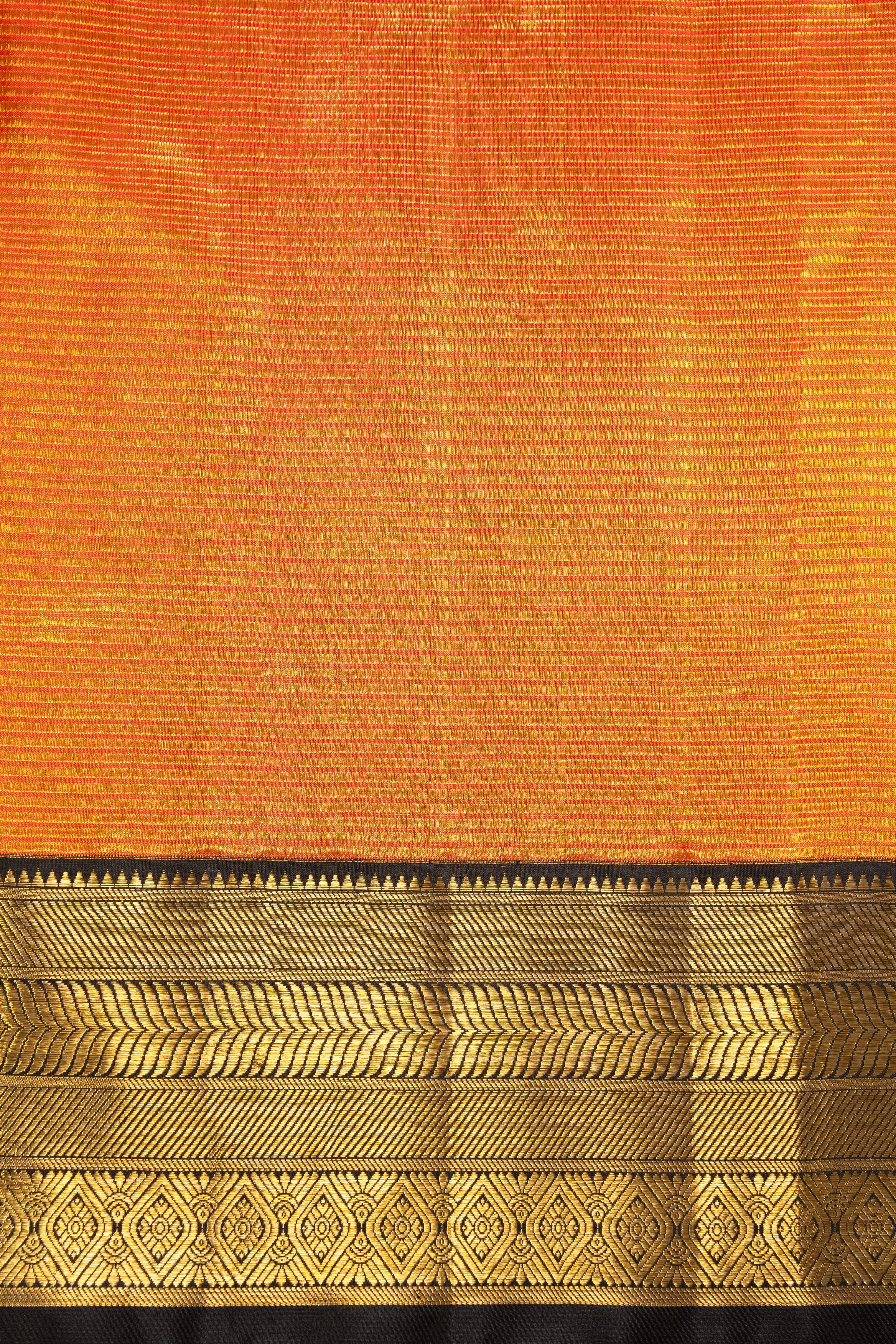 A stunning Korvai black saree, where the boldness of black meets the timeless charm of tissue brocade weaving. The Korvai weaving technique enhances the structure, allowing the saree to drape effortlessly while holding its regal silhouette.