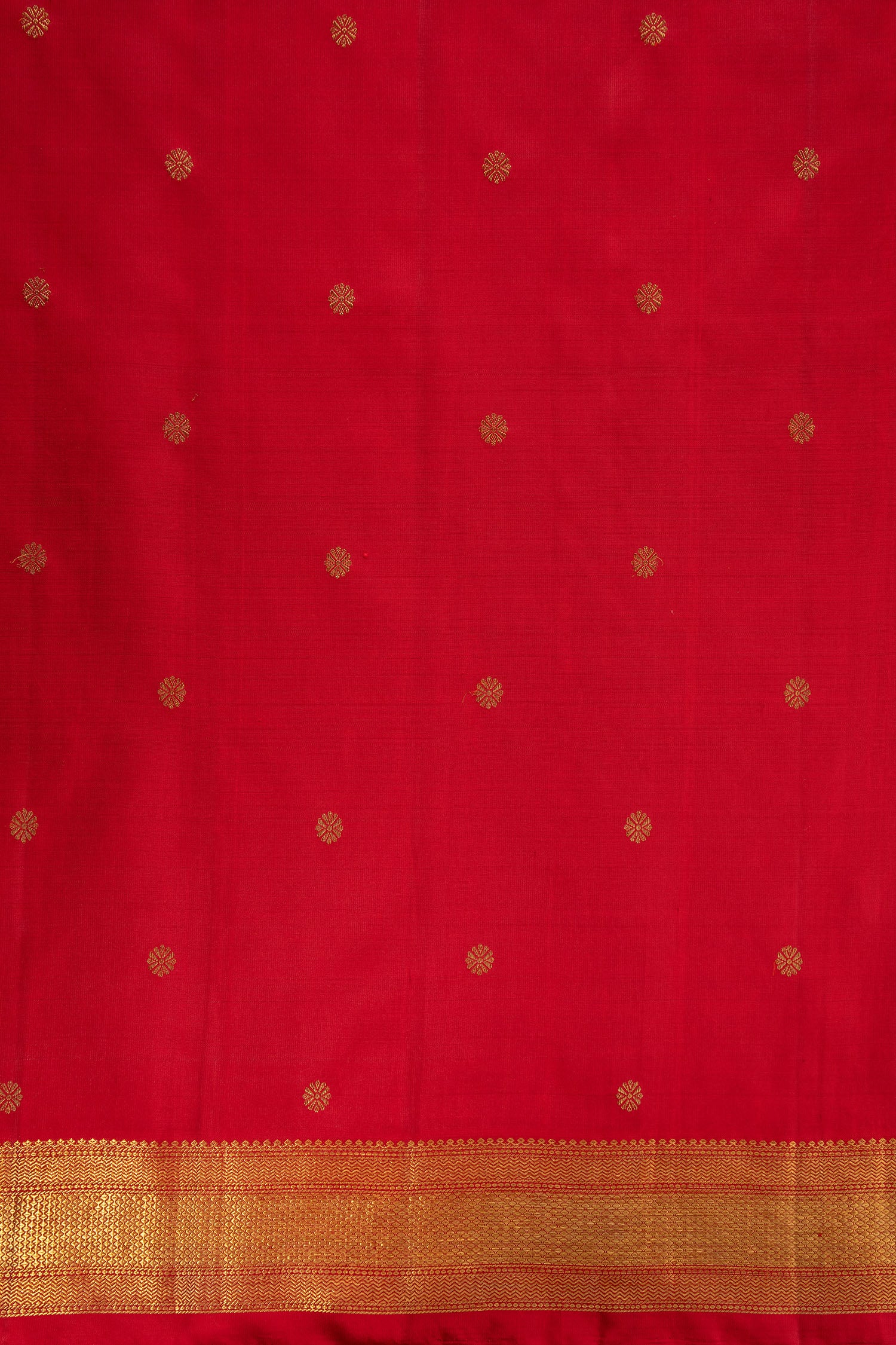 A deep maroon shade, this saree speaks of tradition and elegance. Fully adorned with Kamalam butta, the body showcases the intricate artistry of Kanjivaram weaving.